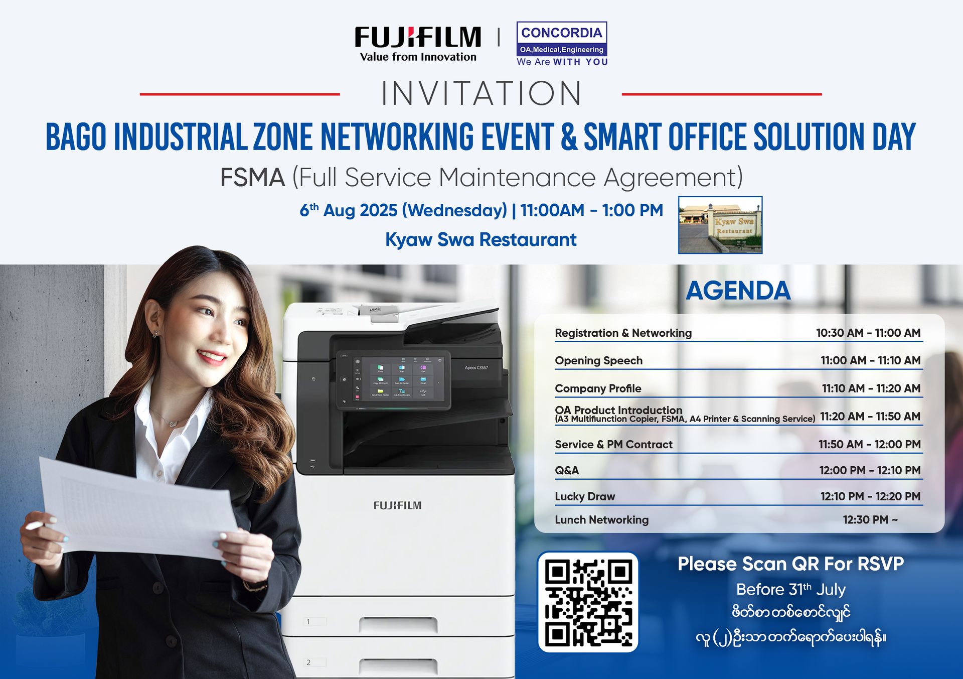 Join us for an exclusive showcase organized by Concordia Public Co., Ltd., featuring the latest innovations in smart office technology โ including multifunction copiers, FSMA Services, A4 Printers, and advanced scanning solutions.